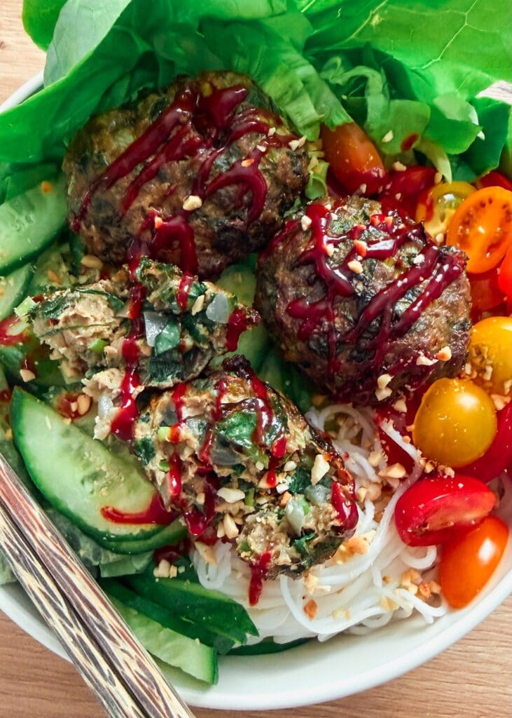 🥢 als Bún Chả mit Reisnudeln & Kräutern