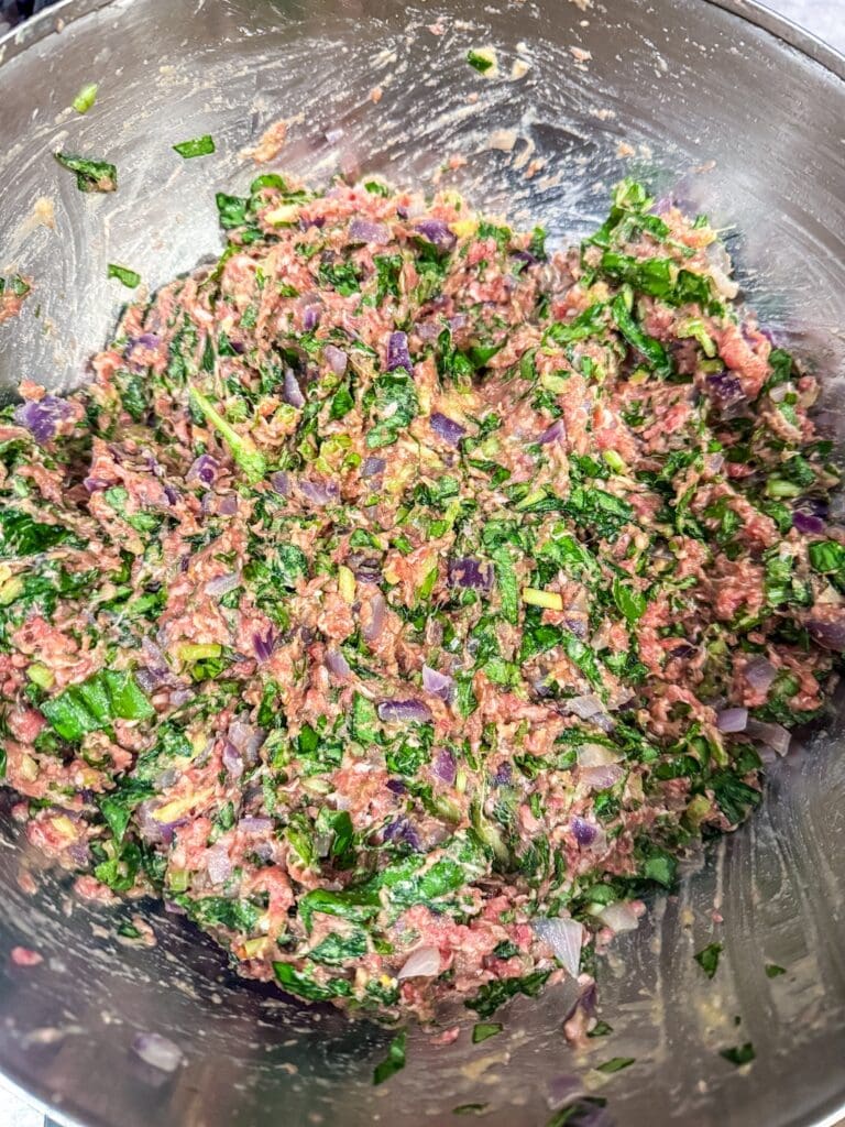 Klassisch wird die Hackfleischmasse in Pfefferblätter gewickelt und anschließend gebraten bzw. gegrillt.