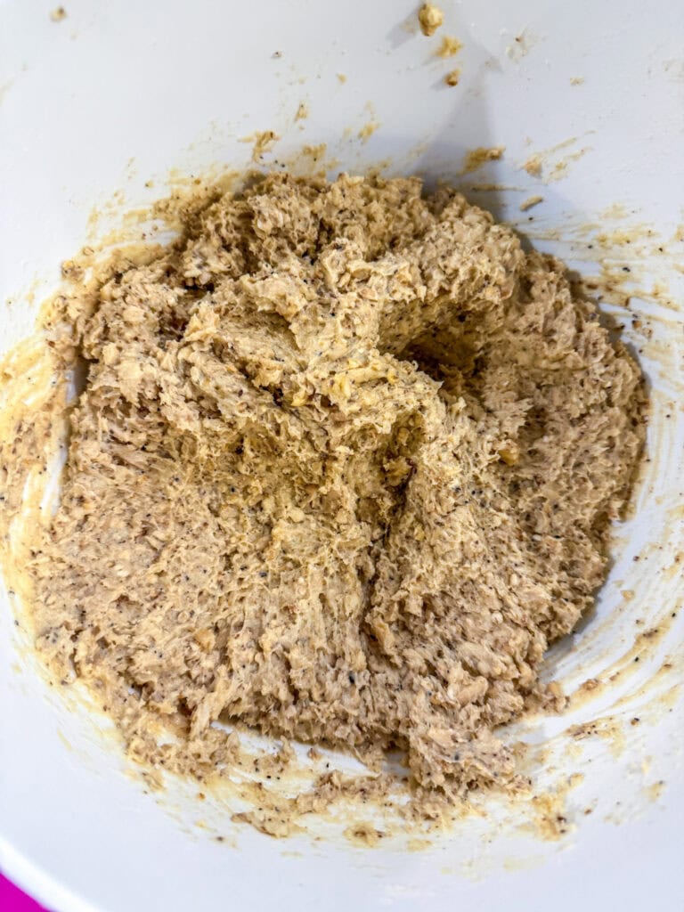 - Achtung: der Teig ist leicht klebrig, wenn du ihn mit den Händen verarbeitest, empfehle ich dir Handschuhe.