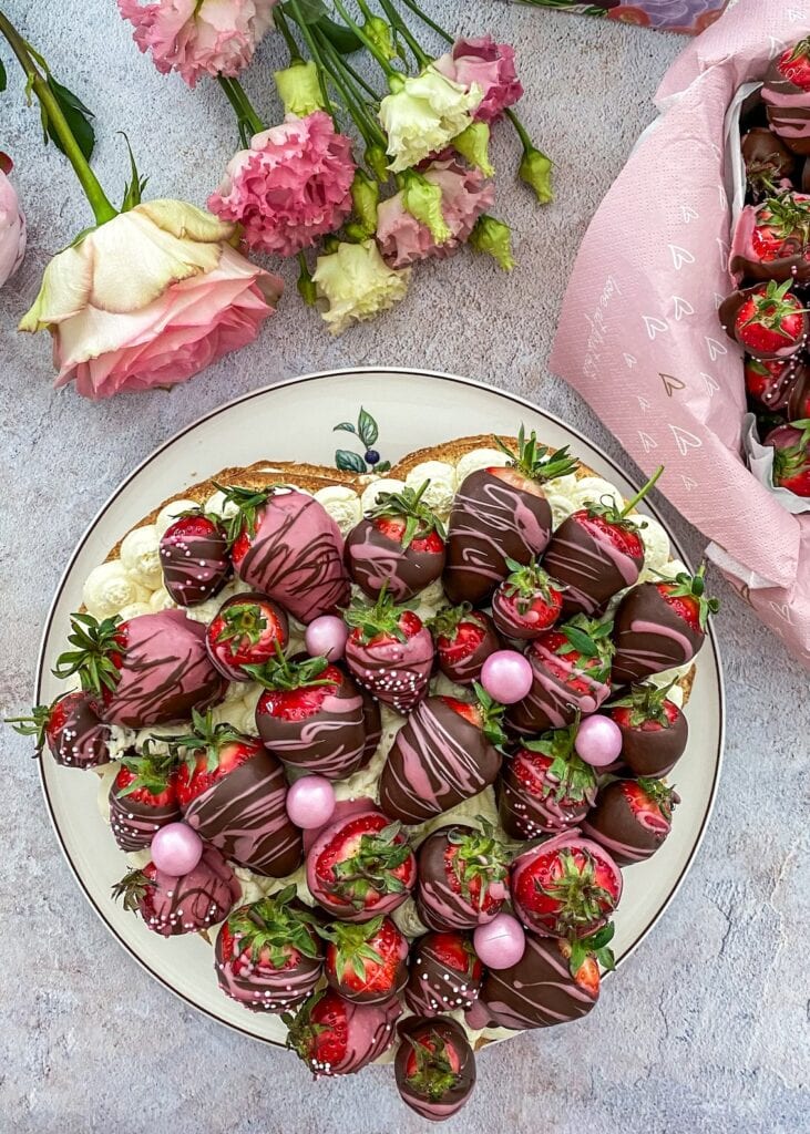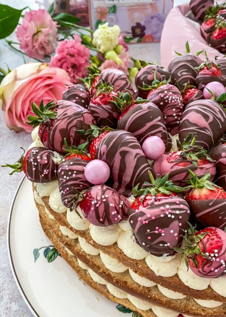 Himbeer-Mascarpone-Torte mit Schoko-Erdbeeren – einfache Muttertagstorte mit saftigem Fantaboden 💕