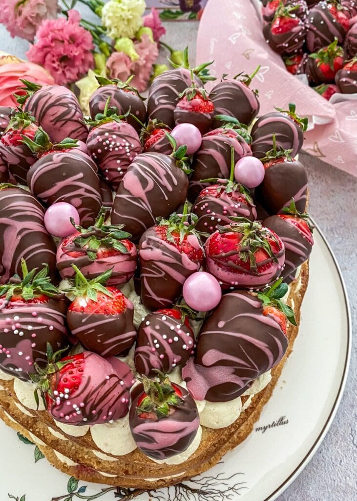 💡 Tipp: Die Schoko-Erdbeeren kannst du super vorbereiten und kurz vor dem Servieren auf die Torte setzen – so bleiben sie schön und frisch.