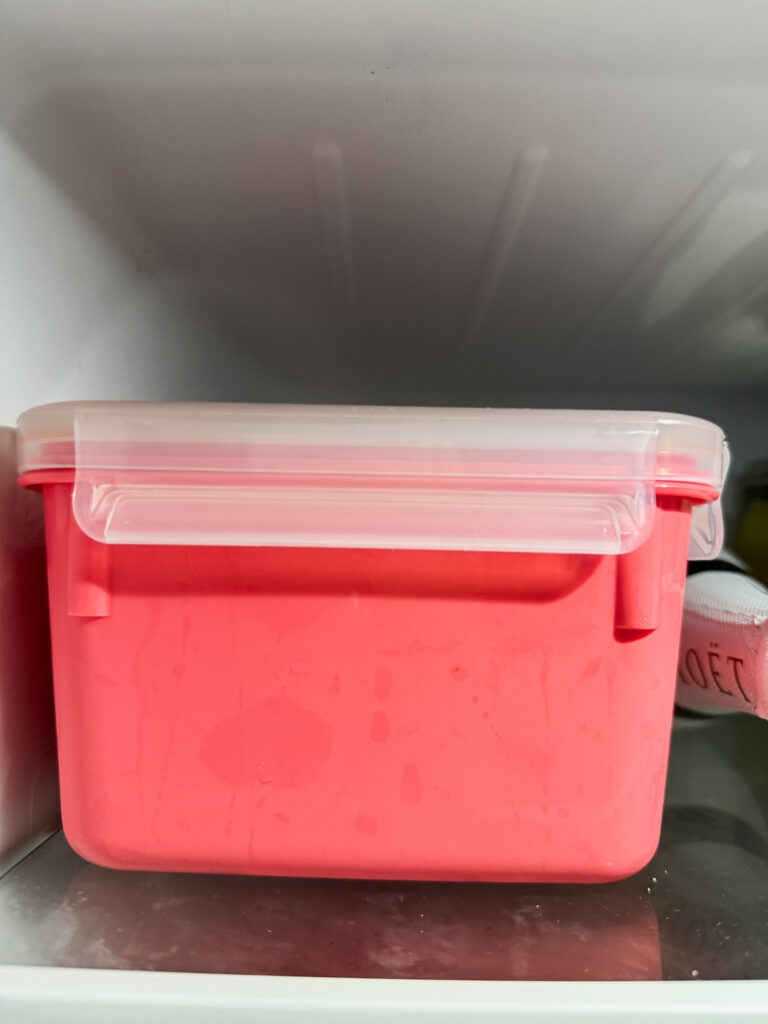 Mindestens 3–4 Tage in einer luftdichten Dose* im Kühlschrank.