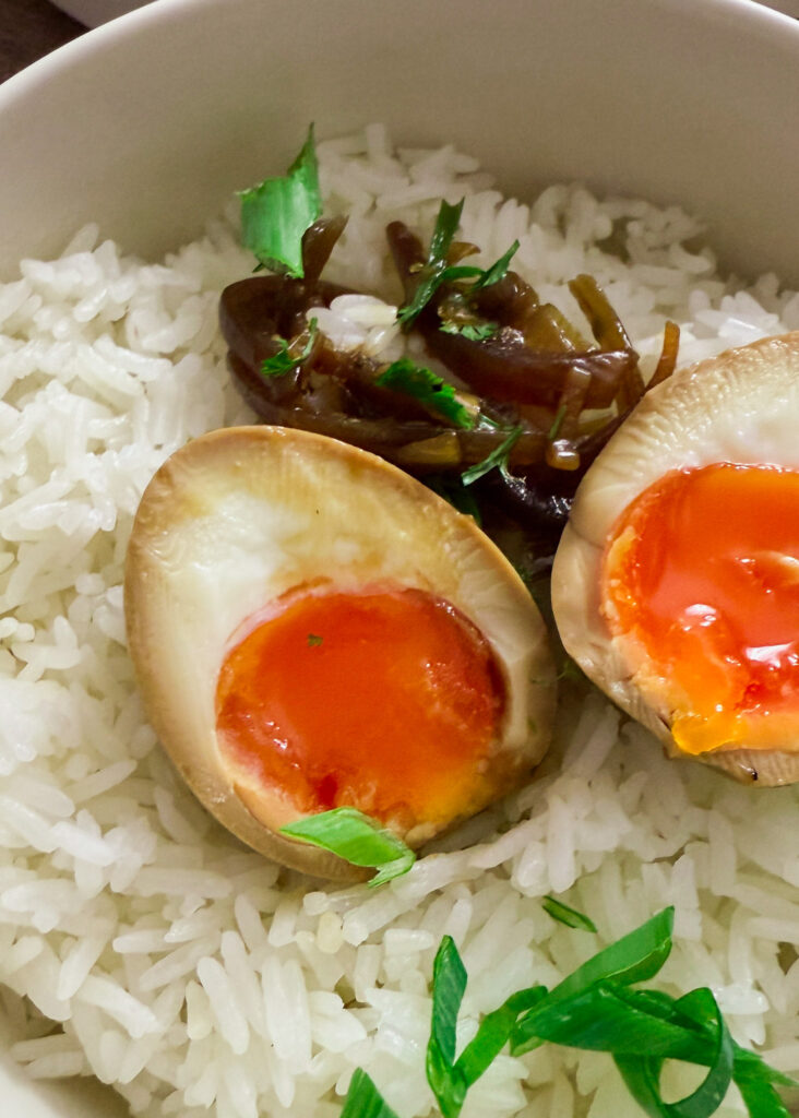 Sie sind inspiriert von den beliebten Mayak Eggs aus Korea und den japanischen Ramen-Eiern (Ajitsuke Tamago) – aber in einer abgewandelten Version, die perfekt zu mir passt. 🇰🇷🍜🇯🇵