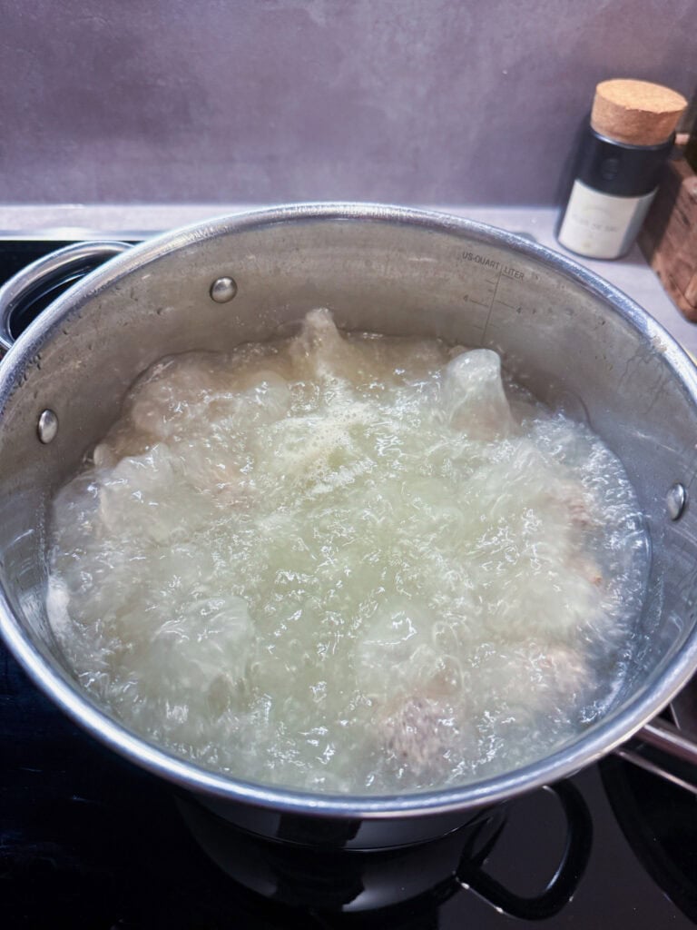 - Währenddessen: Wasser im Wasserkocher kochen (spart Zeit); ich mache erst 1,5 l und fülle es mittig in den Topf, damit die Klößchen ganz bleiben. Anschließend den Herd auf mittlere Stufe stellen, den restlichen Liter Wasser kochen und hinzugeben.Alternativ: Klößchen auf einen Teller legen, Wasser im Topf aufkochen und dann Klößchen reingeben.