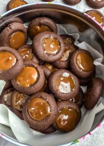 Ich hoffe, du hast jetzt genauso Lust bekommen, diese kleinen Schoko-Karamell-Knöpfe zu backen wie ich – sie duften herrlich nach Schokolade und sind einfach pure Weihnachtsfreude. 🍪